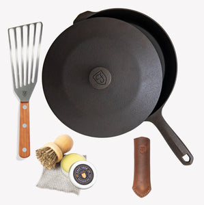 Field Skillets aren’t as light as throwaway nonstick cookware, but neither are they unnecessarily heavy. We spent years studying our favorite vintage skillets to find the perfect balance between lightness while maintaining enough bottom thickness for high heat searing and even cooking.
